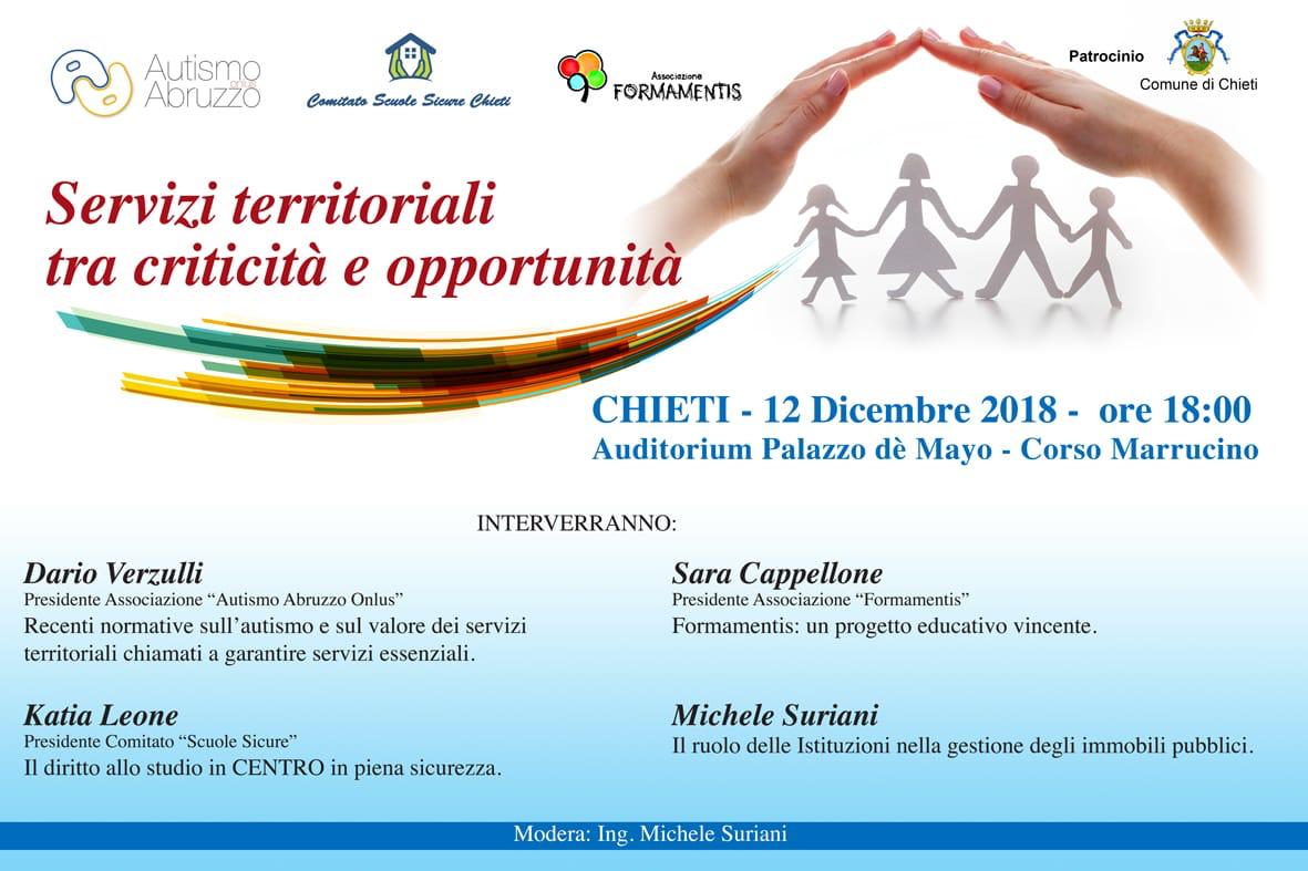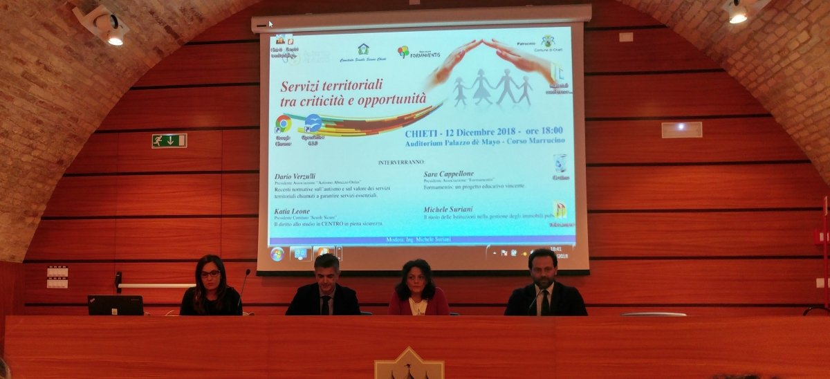 Interessante incontro, tenuto nel pomeriggio del 12 dicembre, presso l’auditorium Palazzo dè Mayo di Chieti per discutere di Servizi territoriali tra criticità e opportunità.