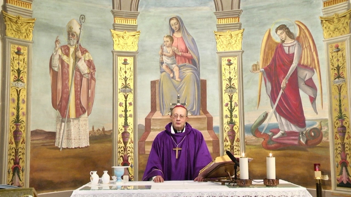 Il vescovo della diocesi di Chieti-Vasto, monsignor Bruno Forte, ha celebrata nella cappella della Curia a Chieti la Santa Messa della domenica, la prima senza la presenza dei fedeli, attenendosi alle disposizioni nazionali emanate per il contenimento del Coronavirus.