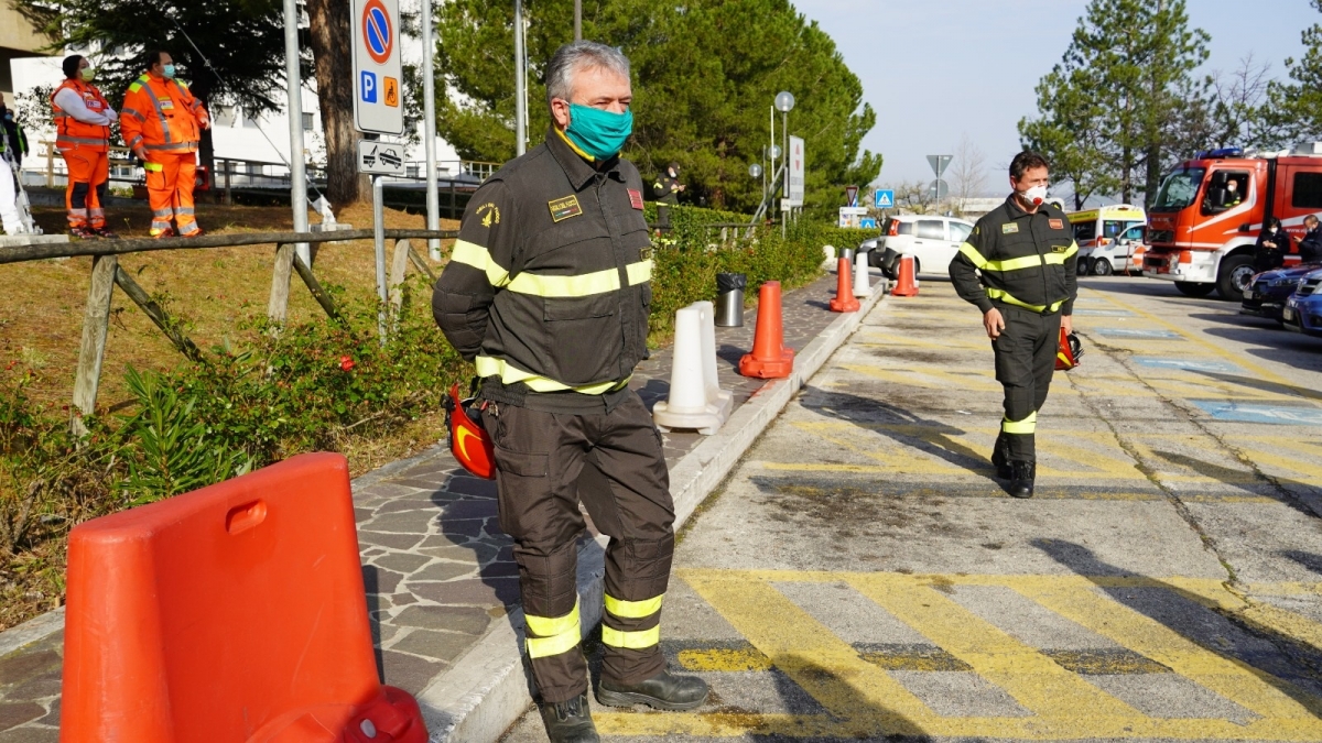 Le pattuglie si sono allineate con i loro mezzi davanti all'ingresso principale, da dove hanno indirizzato il loro saluto al personale affacciato ai balconi e ad alcuni malati che hanno seguito dalla finestra l’intensa cerimonia.
