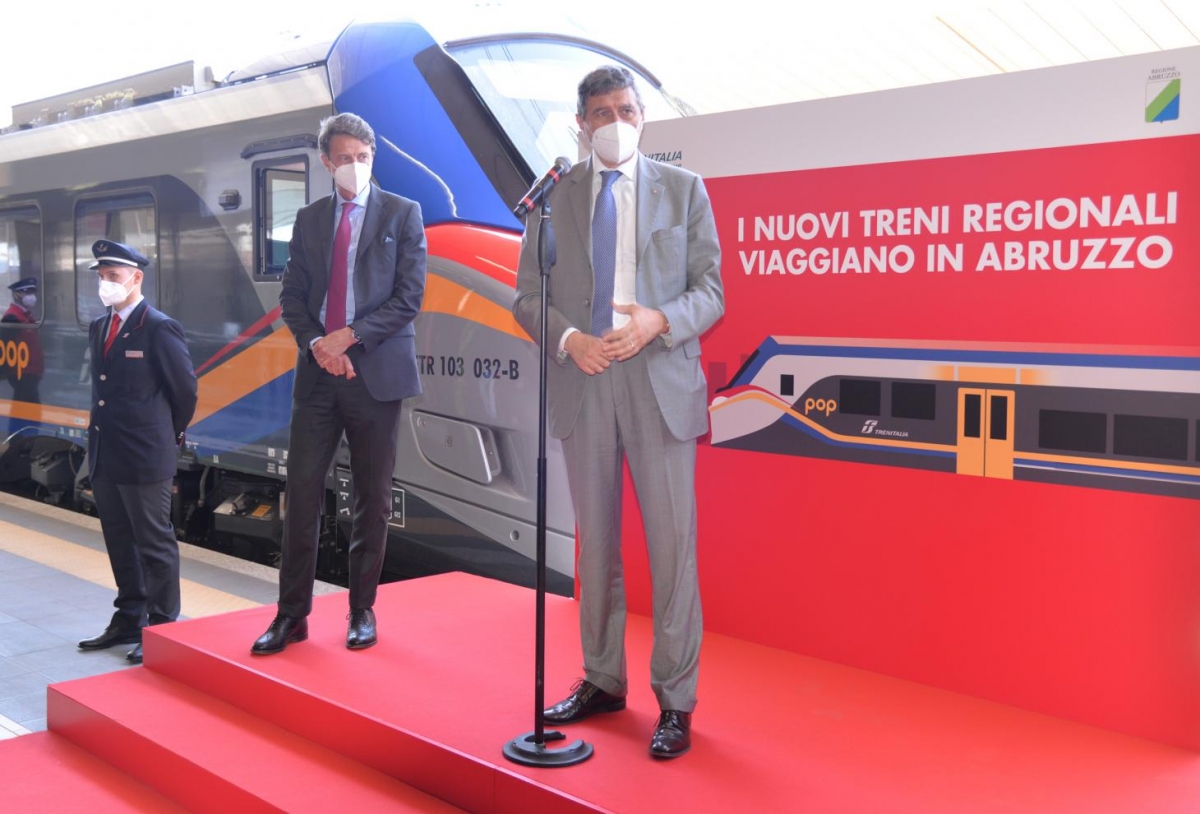 Marsilio, affiancato dal Sottosegretario alle Infrastrutture, Umberto D’Annuntiis, e dal direttore generale della Regione Abruzzo, Barbara Morgante, già amministratore delegato di TreniItalia, ha presenziato alla consegna da parte di Trenitalia (Gruppo FS Italiane), rappresentata dall’amministratore delegato, Luigi Corradi, dei primi due treni Pop. Sono ora 11 i nuovi treni in circolazione sui binari abruzzesi. I nuovi Pop rientrano nei piani di investimento sottoscritti tra Regione Abruzzo e Trenitalia, che prevedono l’acquisto di nuovi treni per oltre 27 milioni di euro. I due treni saranno già in circolazione sulle tratte Sulmona-Pescara, Pescara-Teramo e Pescara- Termoli. Per Trenitalia sono intervenuti anche Sabrina De Filippis, direttore Divisione Passeggeri regionale, e Marco Trotta, direttore regionale Abruzzo.