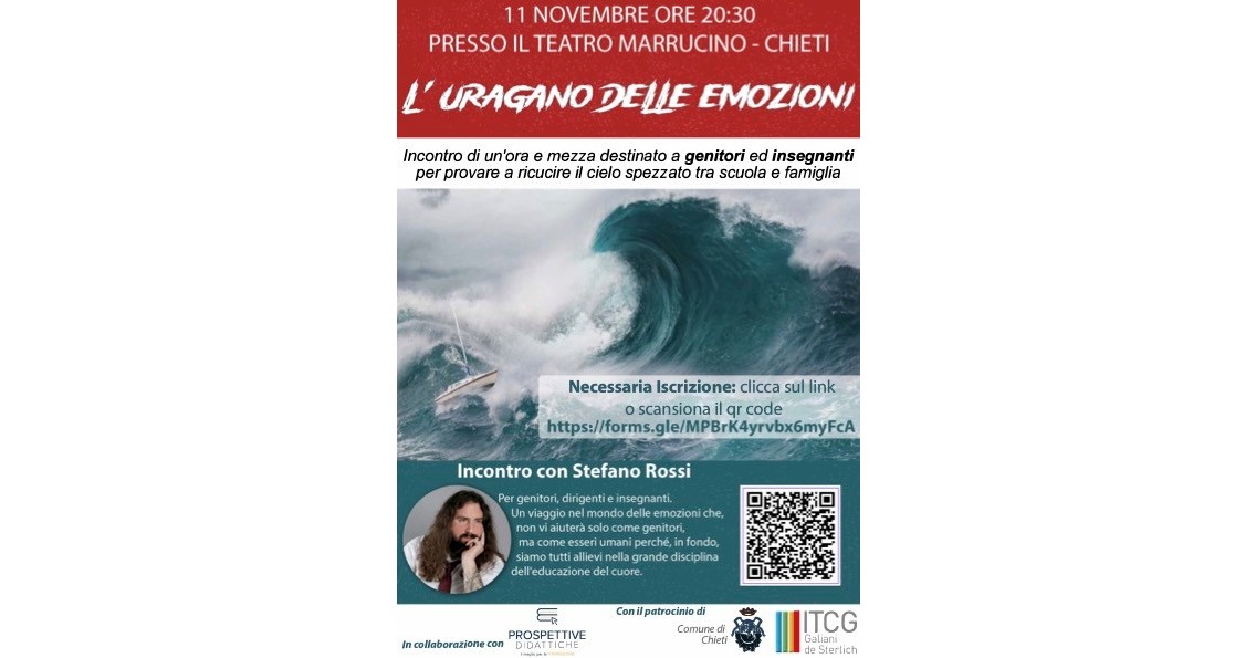 A seguire, stavolta al Marrucino, si terrà invece la seconda conferenza, intitolata “L’Uragano delle Emozioni”, anch’essa è gratuita e aperta a tutti, cittadini e genitori, per poter partecipare a questo evento è obbligatorio iscriversi tramite il link: https://forms.gle/erMoWzyJfgGqWu5X9.