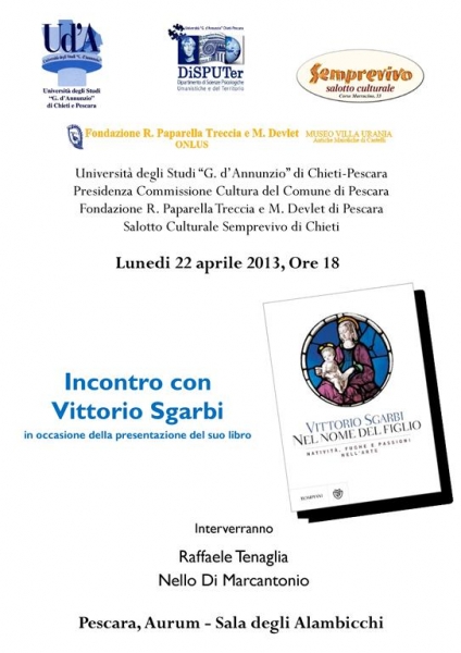 La manifestazione è promossa dall’Ateneo “G. d’Annunzio” di Chieti-Pescara, dal Dipartimento di Scienze Psicologiche, Umanistiche e della Terra, dalla Presidenza della Commissione Cultura del Comune di Pescara, dalla Fondazione R. Paparella Treccia di Pescara e dal Salotto Culturale Semprevivo di Chieti.